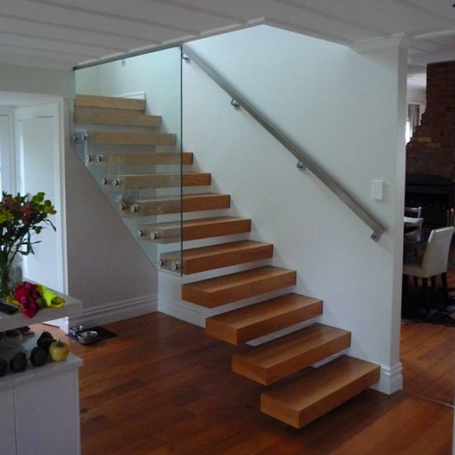 • Description:Indoor Hot Sale Tempered Glass Balustrade Floating Wood Staircase Design