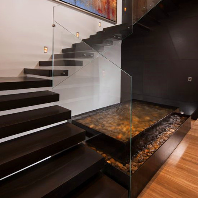 • Description:Modern interior floatings used metal stairs wood staircase with frameless tempered glass railing and stainless steel handrail