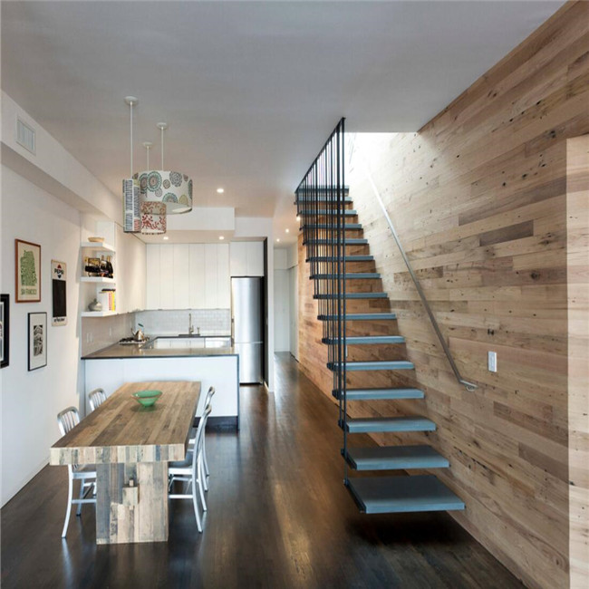 Modern single stringer straight steel staircase with solid